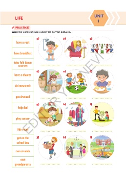 Write the words/phrases under the correct pictures.