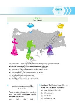 Yukarıda eş parçalara ayrılmış sayı doğ- B) Sıfırın altında 8