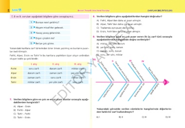 Yukarıdaki kartlara zarf türlerinden birer örnek yazılmış ve bunların puan- B) yer-yön, soru, zaman
