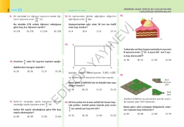9. Bir okuldaki kız öğrenci sayısının erkek öğ- 12. İki kamyondan birinin ağırlığının diğerinin 15.
