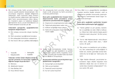 6. Din anlayışı içinde farklı yorumları ortaya 8. Din anlayışında farklı yorumlar ortaya çık- 10. Yüce Allah (c.c.), peygamberler aracılığıyla