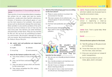 Answer the questions (1-3) according to the text 3. Which of the following is not true according 5. Jamie: People pollute the environment
