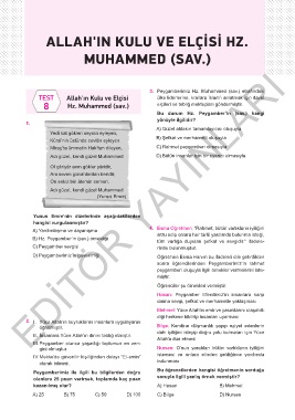 Adı güzel, kendi güzel Muhammed D) Bütün insanlar için bir uyarıcı olmasıyla