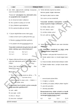 7. SINIF TÜRKÇE TESTİ DENEME SINAVI - 4