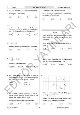 7. SINIF MATEMATİK TESTİ DENEME SINAVI - 4