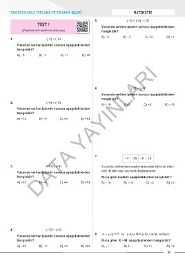 3. (+10) − (−4) Yukarıda verilen tam sayılar arasından sıfıra en yakın