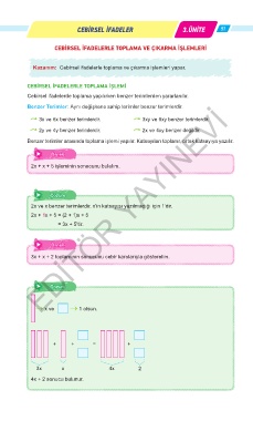 Kazanım: Cebirsel ifadelerle toplama ve çıkarma işlemleri yapar.