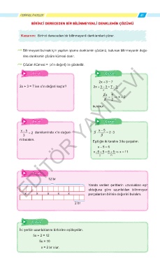Kazanım: Birinci dereceden bir bilinmeyenli denklemleri çözer.