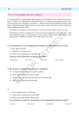 13 Hz. Muhammed’in (sav.) okuduğu ayetten hareketle Hz. Muhammed (sav.) ile ilgili;