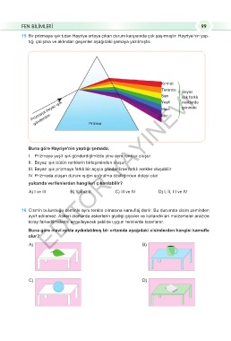 15 Bir prizmaya ışık tutan Hayriye ortaya çıkan durum karşısında çok şaşırmıştır. Hayriye’nin yap-