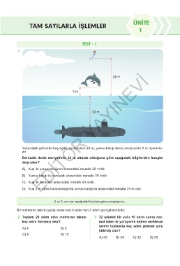Denizaltı deniz seviyesinin 32 m altında olduğuna göre aşağıdaki bilgilerden hangisi