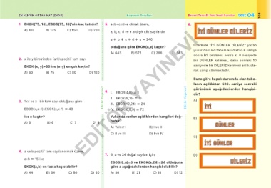EN KÜÇÜK ORTAK KAT (EKOK) Kazanım Soruları Beceri Temelli Yeni Nesil Sorular test 04 109
