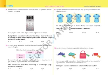 9. 9 katlı bir binanın zemin katından asansöre binen 3 kişinin her biri fark- 11. Aşağıda bir futbol takımında oynayan beş oyuncuya ait forma numa-