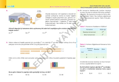 parçaya sonra bu parçalardan birini 2 eş parçaya ayırıyor. Tablo 2: Kolilere Sığabilecek Konserve Kutu