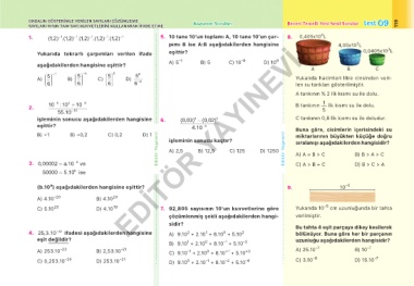 1. (1,2) .(1,2) .(1,2) .(1,2) .(1,2) − 1 5. 10 tane 10’un toplamı A, 10 tane 10’un çar- 8. 0,405x10 L