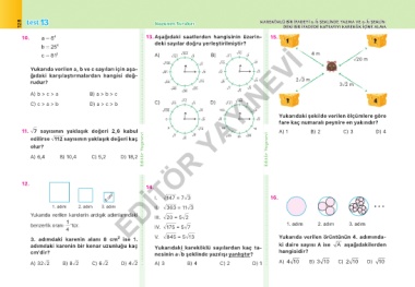10. a = 8 4 13. Aşağıdaki saatlerden hangisinin üzerin- 15. 1 2