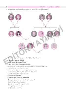 9. Aşağıda kesikli çizgiler evlilikleri, düz çizgiler ise kişilerin çocuklarını göstermektedir.