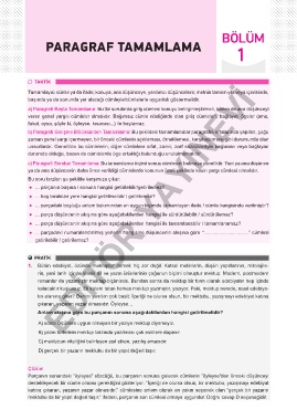 b) Paragrafı Gelişme Bölümünden Tamamlama: Bu şekildeki tamamlamalar paragrafın ortalarında yapılan, çoğu
