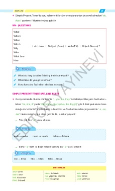 olduğu durumlarda fiil yalın halde kullanılmaz ve fiile belli kurallar çerçevesinde “-s, -es,