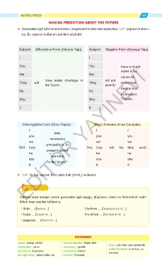 ✶ Gelecekle ilgili tahminlerimizden, öngörülerimizden bahsederken "will" yapısını kullanı-