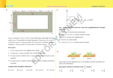 parkurunun C köşesinden harekete başlayan K koşucusu 20 s sonra O Editör Yayınevi D) Cisim II’ de sabit hızlıdır.