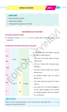 Sadece olumlu cümle yapısında he, she, it öznelerinden sonra gelen fiile “-s, -es, -ies”