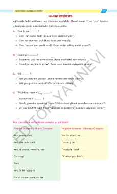 Rica cümlelerine verilebilecek cevaplar şu şekildedir: