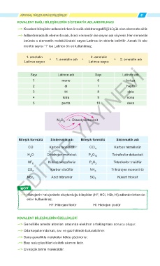 F Kovalent bileşikler adlandırılırken öncelik elektronegatifliği küçük olan elemente aittir.