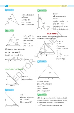 m(B) = 90 o m(C) = 22,5 o A¿BC dik üçgeninde hipotenüse ait yükseklik çizil-
