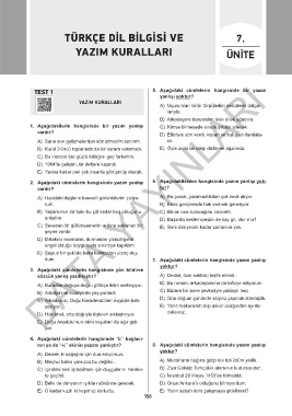 nın ya da “-ki” ekinin yazımı yanlıştır? 8. Aşağıdaki cümlelerin hangisinde yazım yanlışı