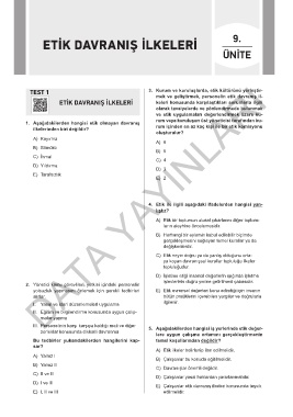 TEST 1 3. Kurum ve kuruluşlarda, etik kültürünü yerleştir-