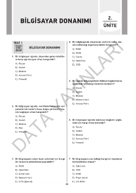 TEST 1 4. Bir bilgisayarda depolanan verilerin kalıcı ola-