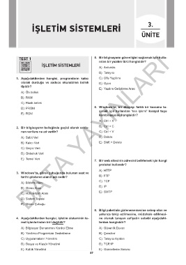 TEST 1 5. Bir bilgisayarın güvenliğini sağlamak için kulla-