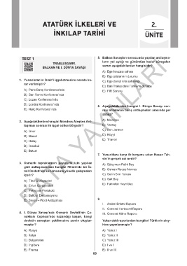TEST 1 5. Balkan Savaşları sonucunda yapılan antlaşma-
