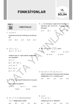 TEST 1 5. y = f(x) fonksiyonu doğrusal bir fonksiyon ol-