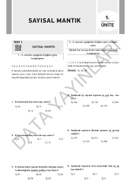 TEST 1 4. - 6. soruları aşağıdaki bilgilere göre cevapla-