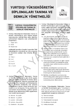 TEST 1 YURTDIŞI YÜKSEKÖĞRETİM 3. Yurtdışı Yükseköğretim Diplomaları Tanıma ve