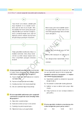 8 A kutucuğundaki parçada geçen “kendi içindeki 10 C kutucuğundaki parçanın ilk cümlesinde “ve” bağ-