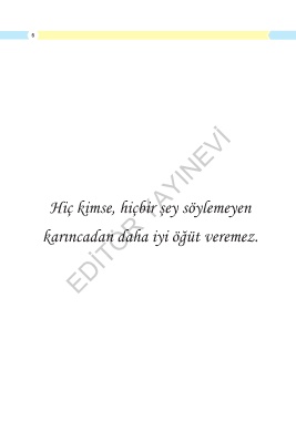 6 EDİTÖR YAYINEVİ Hiç kimse, hiçbir şey söylemeyen karıncadan daha iyi öğüt veremez.