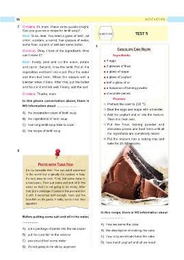 B) put the tuna fish in the mixture C) how long we should bake the cake