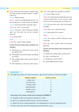 7 The table below shows the results of a study on daily Internet activities of 100 teens in Japan.