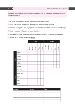 5. Çay sipariş eden kişi soda siparişi veren arkadaşından 3 lira daha az hesap ödemiştir.