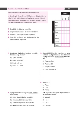 1. Aşağıdaki kişilerden hangileri aynı bö- 3. Aşağıdaki kişilerden hangilerinin aynı