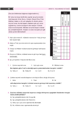 Bu bilgilere göre Fırat’ın elendiği aşama yukarıdakilerden hangileri olabilir?