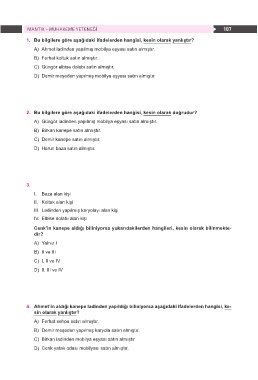 4. Ahmet’in aldığı kanepe ladinden yapıldığı biliniyorsa aşağıdaki ifadelerden hangisi, ke-