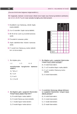 modellerinden hangilerinin kamerası B) C ve D modelleri Apple marka tablettir.