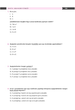 4. B ile C yemeklerinin aynı aşçı tarafından yapıldığı biliniyorsa aşağıdakilerden hangisi