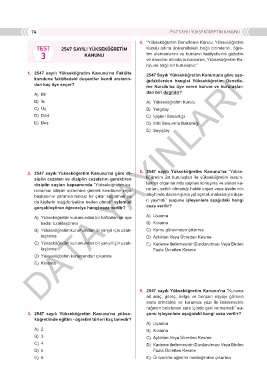 TEST 2547 SAYILI YÜKSEKÖĞRETİM Kurulu adına üniversiteleri, bağlı birimlerini, öğre-