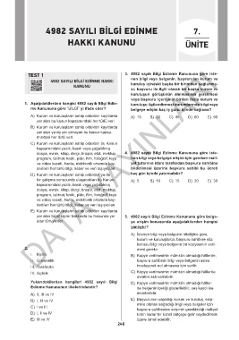 TEST 1 3. 4982 sayılı Bilgi Edinme Kanununa göre iste-