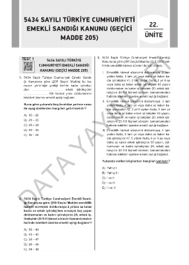 TEST 1 5434 SAYILI TÜRKİYE 3. 5434 Sayılı Türkiye Cumhuriyeti Emekli Sandığı